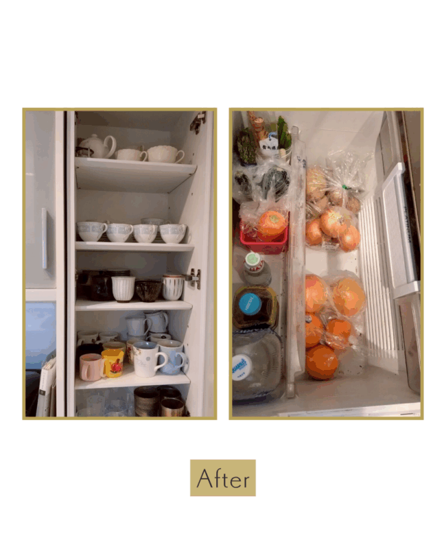 受講して1番良かったことは、キッチンやカウンターがいつも綺麗になり、毎日すっきりした空間で料理できるのが気持ちよく、無駄な動きがなくなったことと、食材をすべて把握できているので食材を無駄にすることがなくなったことです。