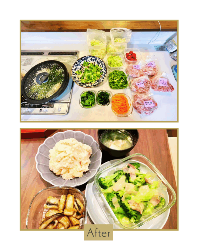 コースを受講する前、買い物が満足にできず、何を作っていいか分からないし考える時間がないことや、宅配のミールキットや冷凍食品に頼ってばかりで自分のレパートリーが少ないこと、また家族が美味しいと言ってくれる料理ができないことに悩んでいて、長女の就学を前に日々の生活を振り返り不安でいっぱいになりました。